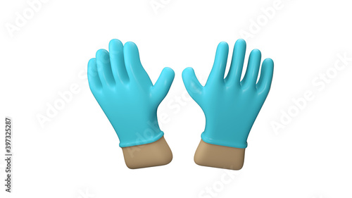 Fototapeta premium Hands putting on protective blue gloves. 3d illustration