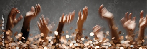 Fototapeta premium Hands Reaching out to Collect Jackpot Coins in a Frenzy of Excitement With a Motion Blur Effect Conveying Dynamic Energy and Anticipation