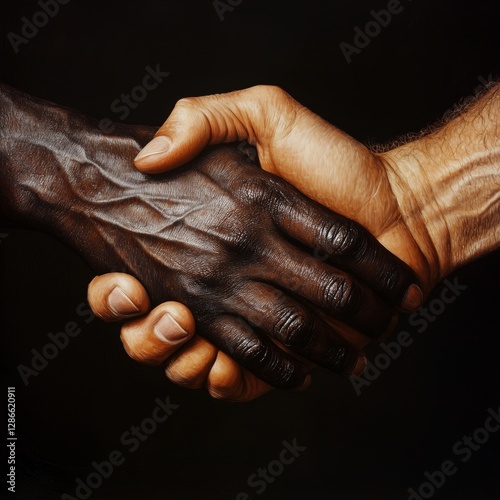 Fototapeta premium Hands shaking in unity and collaboration Two Hands, One Humanity symbolizing unity and strength against racism.