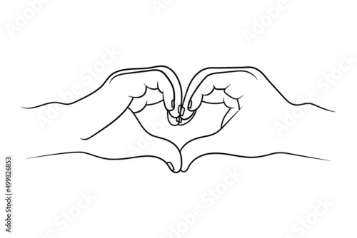 © Evgeniya Vasileva, Fototapeta premium Hands show a heart sketch illustration.