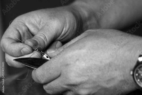 Obraz premium hands tying lure