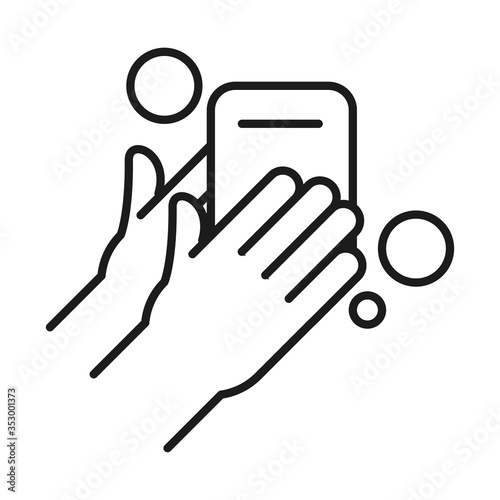 Obraz premium Hands washing with soap line style icon vector design