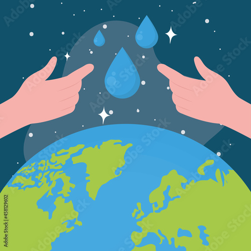 Obraz premium hands with drops and world