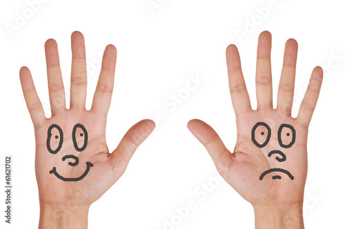 © wolfelarry, Obraz premium Hands with smile faces isolated on white