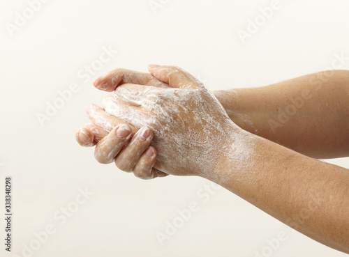 © Mara Zemgaliete, Fototapeta premium hands with soap foam