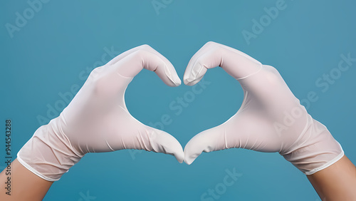 Fototapeta premium Hands with white gloves forming a heart shape.