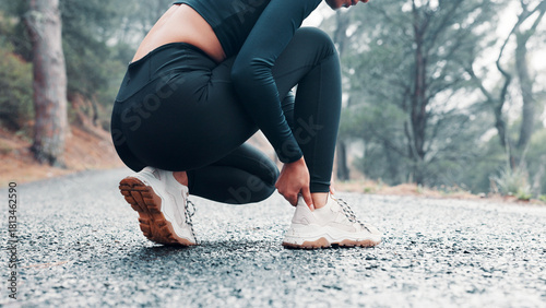 © peopleimages.com, Obraz premium Hands, woman and ankle pain from fitness outdoor, sports injury and muscle cramp. Athlete, female runner and discomfort from exercise mistake, joint inflammation and calf strain for training accident
