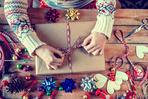 © KikoStock, Fototapeta premium Hands wrapping Christmas gifts