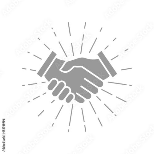 Obraz premium Handshake and sun rays. Shaking hands. Vector isolated on white.