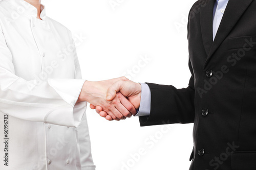 Fototapeta premium handshake between a cooker and a businessman