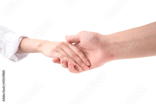 © stas_malyarevsky, Fototapeta premium Handshake. Handshaking isolated on white background. Woman and man.
