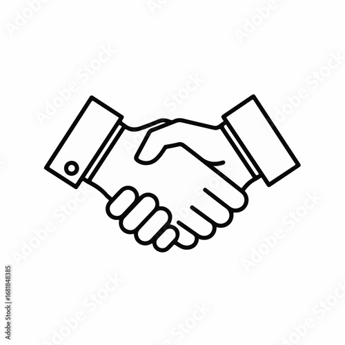 © Pemari, Naklejka premium Handshake in outline style conveying business partnership deal. Symbol handshake illustrates cooperation and agreement between people.