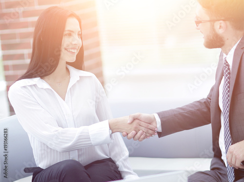 Fototapeta premium handshake of manager and client sitting in the office lobby.