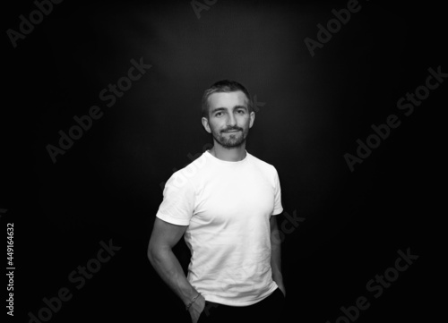 © Nazar, Fototapeta premium handsome and smiling guy on a black background