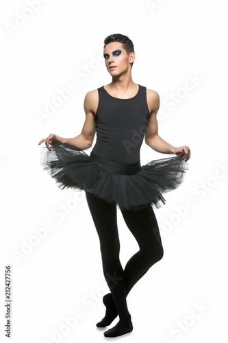 Obraz premium handsome ballet artist in tutu skirt