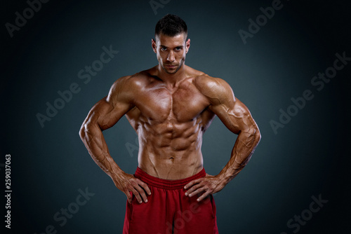 Fototapeta premium Handsome Body Builder Flexing Muscles