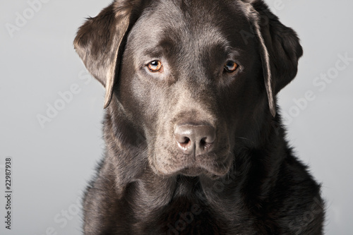 © JPRFphotos, Fototapeta premium Handsome Chocolate Labrador against Grey Background