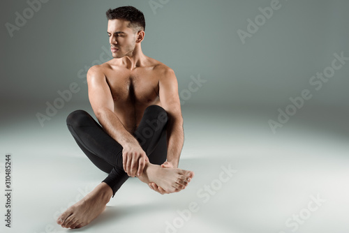 Obraz premium handsome dancer with closed eyes in black leggings dancing contemporary on...