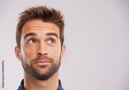 Obraz premium Handsome daydreamer. Studio shot of a handsome young man looking up.