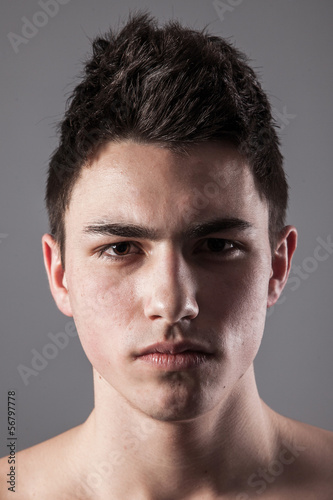 © Sergii Figurnyi, Fototapeta premium Handsome face of a young man on grey