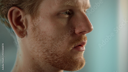 © stockbusters, Obraz premium Handsome guy looking screen closeup. Focused manager analyzing problem in office