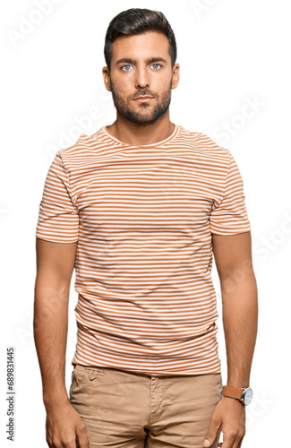 Fototapeta premium Handsome hispanic man wearing casual clothes relaxed with serious expression...