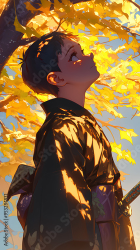 © Adja Atmaja, Fototapeta premium handsome japanese anime boy in green background, anime wallpaper
