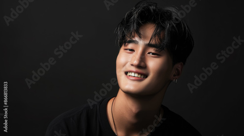 Fototapeta premium handsome korean young man on black background, guy, boy, model, k-pop, asian,...