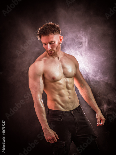 © theartofphoto, Fototapeta premium Handsome male bodybuilder in studio shot, looking down to a side