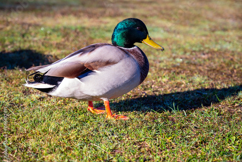 Obraz premium handsome male duck on green grass