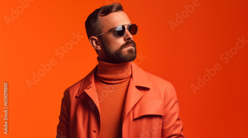 Fototapeta premium Handsome male model standing against orange background