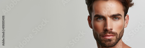 © Fxquadro, Obraz premium Handsome male model with beard on grey