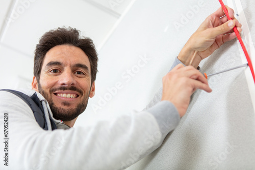 © auremar, Obraz premium handsome male repairman fixing door with screwdriver