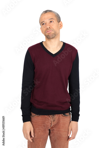 Fototapeta premium Handsome man doing different expressions in different sets of clothes: bored