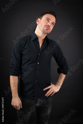 © chris_b_paris, Naklejka premium handsome man doing different expressions in different sets of clothes: tired