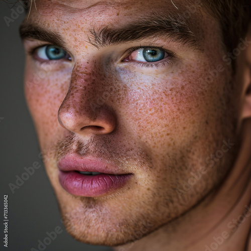 © Got Pink?, Fototapeta premium Handsome man, freckles, close up portrait, editorial style shot.