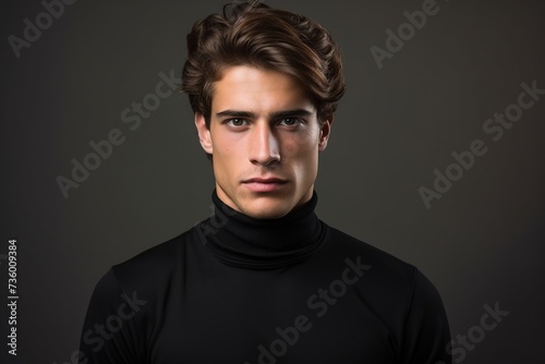 © Kristian, Naklejka premium Handsome Man in Black Turtleneck Portrait