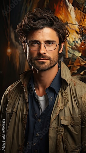 © tanyastock, Obraz premium Handsome man in spectacles, portrait. Man portrait illustration. Generative AI