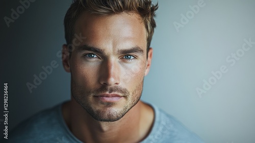 © Chayanin Wongpracha, Obraz premium handsome man portrait blue eyes serious expression