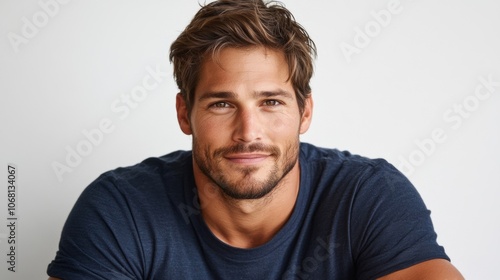 Obraz premium Handsome Man Smiling Casual Portrait Studio Shot