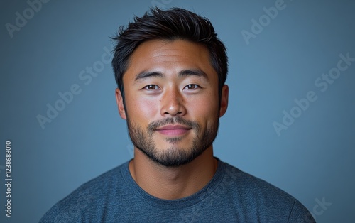 © jiawei, Obraz premium handsome man smiling with a mustache and a causal t-shirt