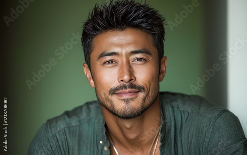 Fototapeta premium handsome man wearing casual clothing, want to smiling