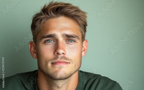 © jiawei, Obraz premium handsome man with a beard and a color shirt is smiling