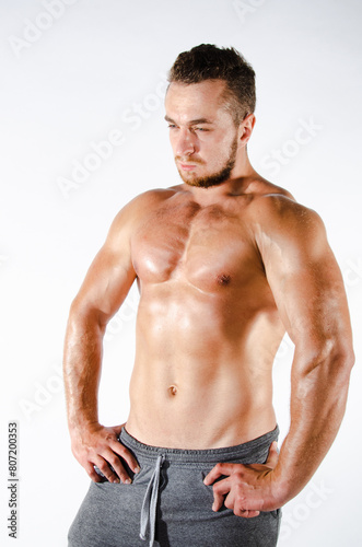 Fototapeta premium Handsome man with an athletic body. Fitness and healthy lifestyle.
