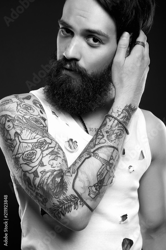 Obraz premium handsome man with beard and tattoo
