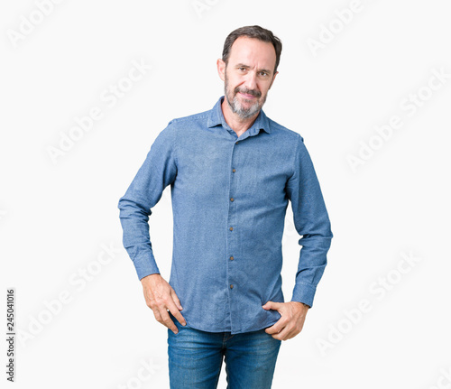 Fototapeta premium Handsome middle age elegant senior man over isolated background Relaxed with serious expression on face. Simple and natural looking at the camera.