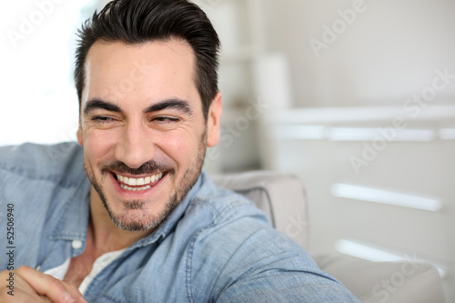 Fototapeta premium Handsome middle-aged man relaxing in sofa