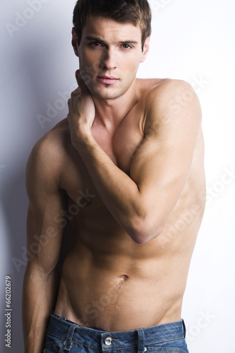 Fototapeta premium Handsome muscular guy with naked torso