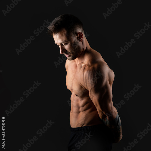 © A Stock Studio, Fototapeta premium Handsome muscular male bodybuilder on a black background. Strong man.