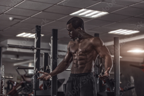 © bojan656, Naklejka premium Handsome muscular man exercise in gym.